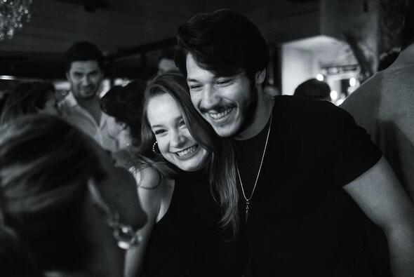 Aka’nın “Çukur” dizisindeki rol arkadaşı Rıza Kocaoğlu’nun da eşlik ettiği çift, mekanda geç saatlere kadar eğlendi.