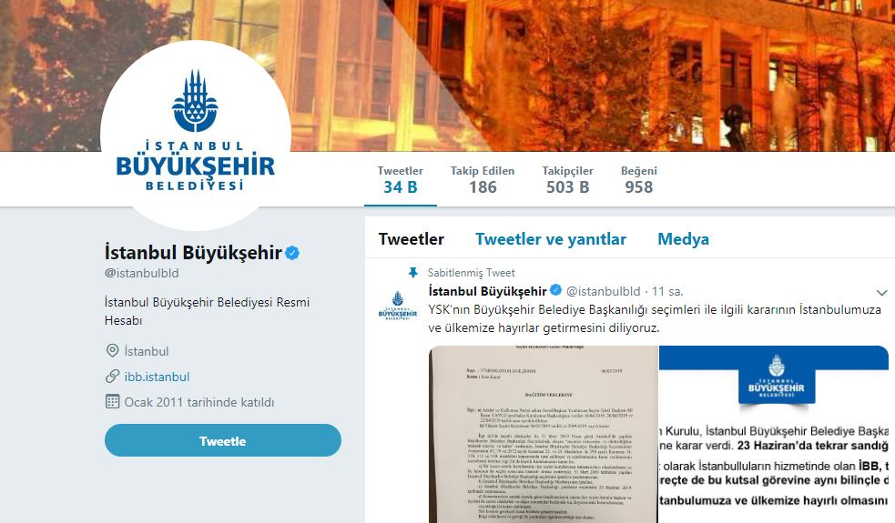 YSK’nın İstanbul Büyükşehir Belediye seçiminin yenilenmesine dair aldığı kararın ardından belediyenin TWitter hesabı şaşırtmadı!