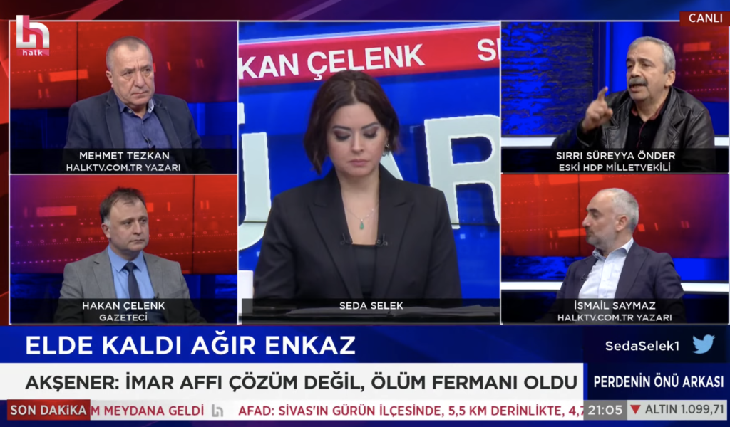 Halk TV ekranlarına çıkan Sırrı Süreyya Önder “Türkiye'nin en büyük terör örgütü imar şebekeleridir.” dedi.